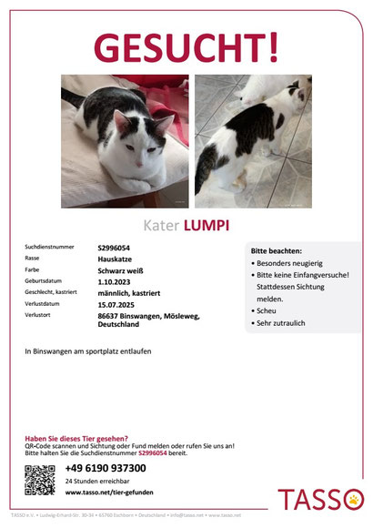 Weitere Angaben zu Lumpi finden sie in seinem Suchplakat.