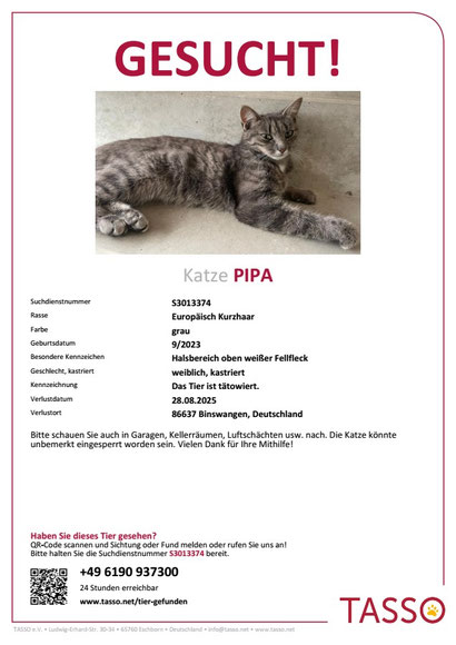 Weitere Angaben zu Pipa finden Sie in ihrem Suchplakat.