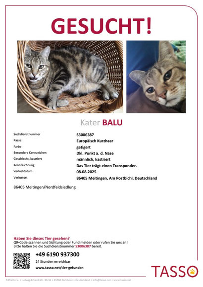 Weitere Angaben zu Balu finden Sie in seinem Suchplakat.