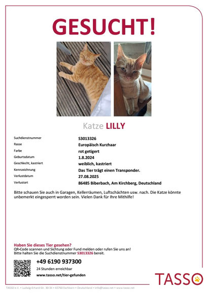 Weitere Angaben zu Lilly finden Sie in ihrem Suchplakat.