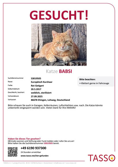 Weitere Angaben zu Babsi finden Sie in ihrem Suchplakat.