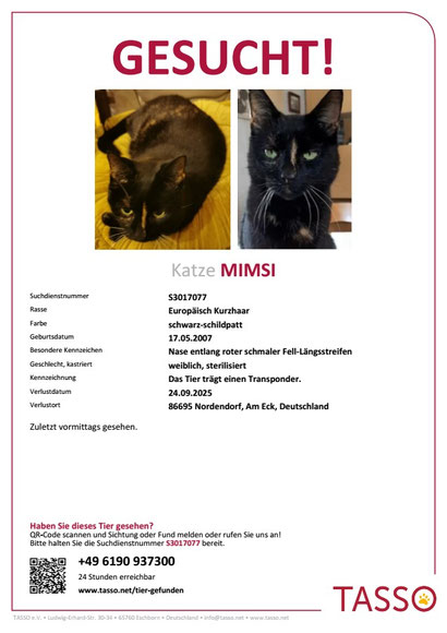 Weitere Angaben zu Mimsi finden Sie in ihrem Suchplakat.