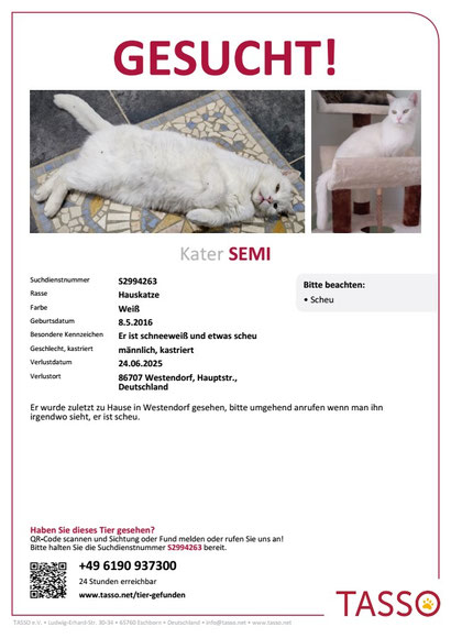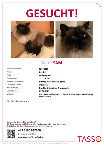Hinweise bitte direkt an Tasso oder an Sams Besitzer unter 0172-9268015.