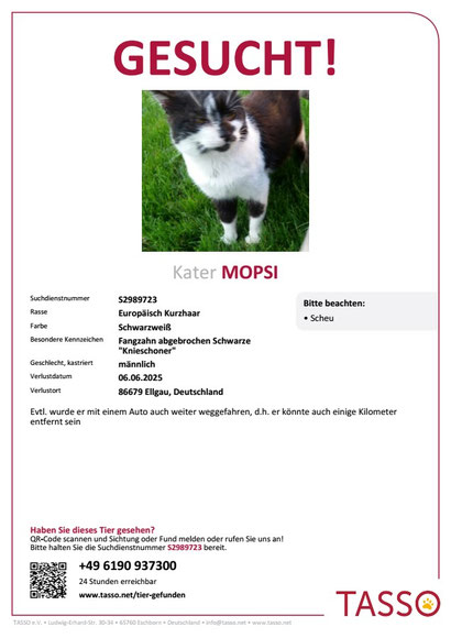 Weitere Angaben zu Mopsi finden Sie in seinem Suchplakat.